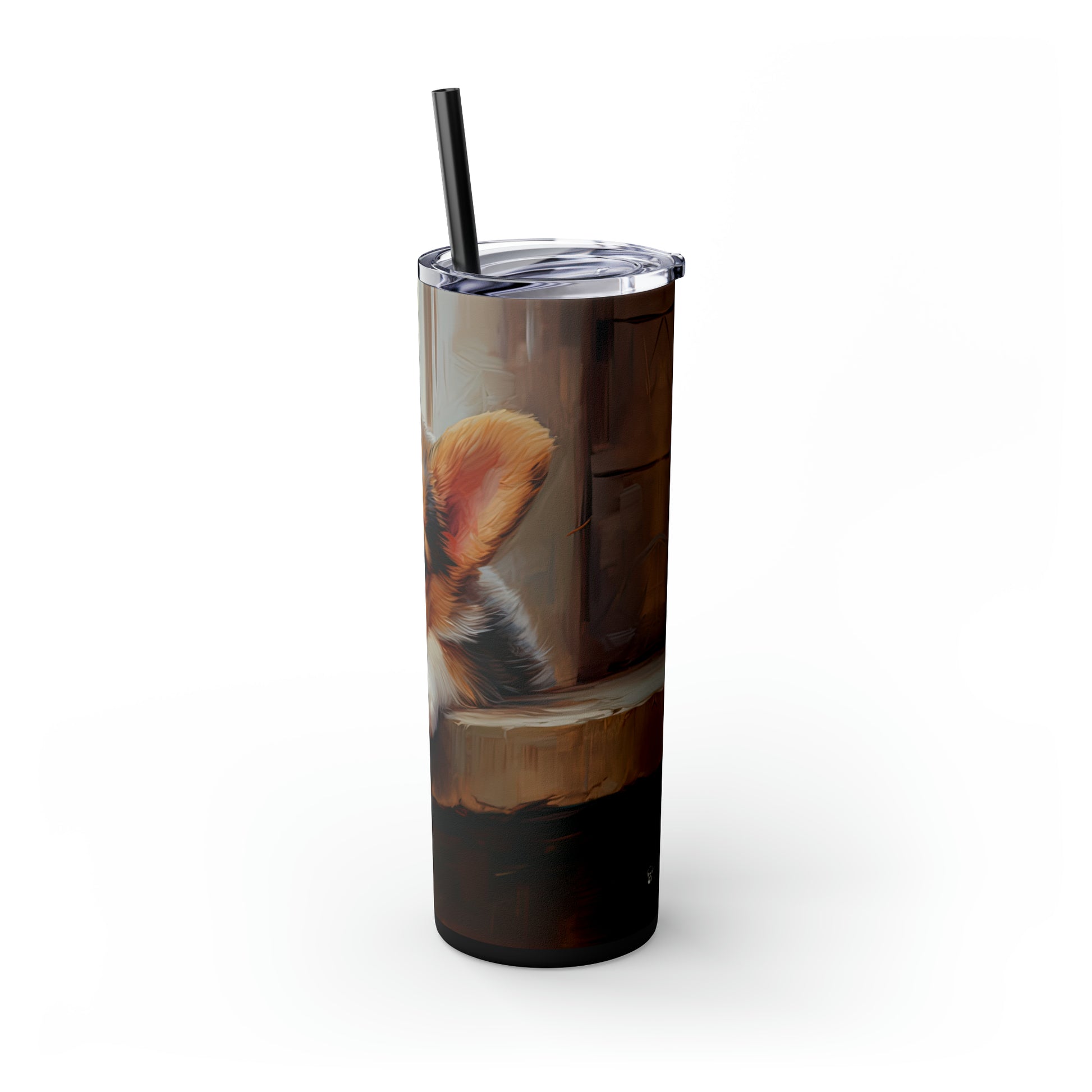 This skinny tumbler has a lid & a straw. But most importantly...it's got corgi!