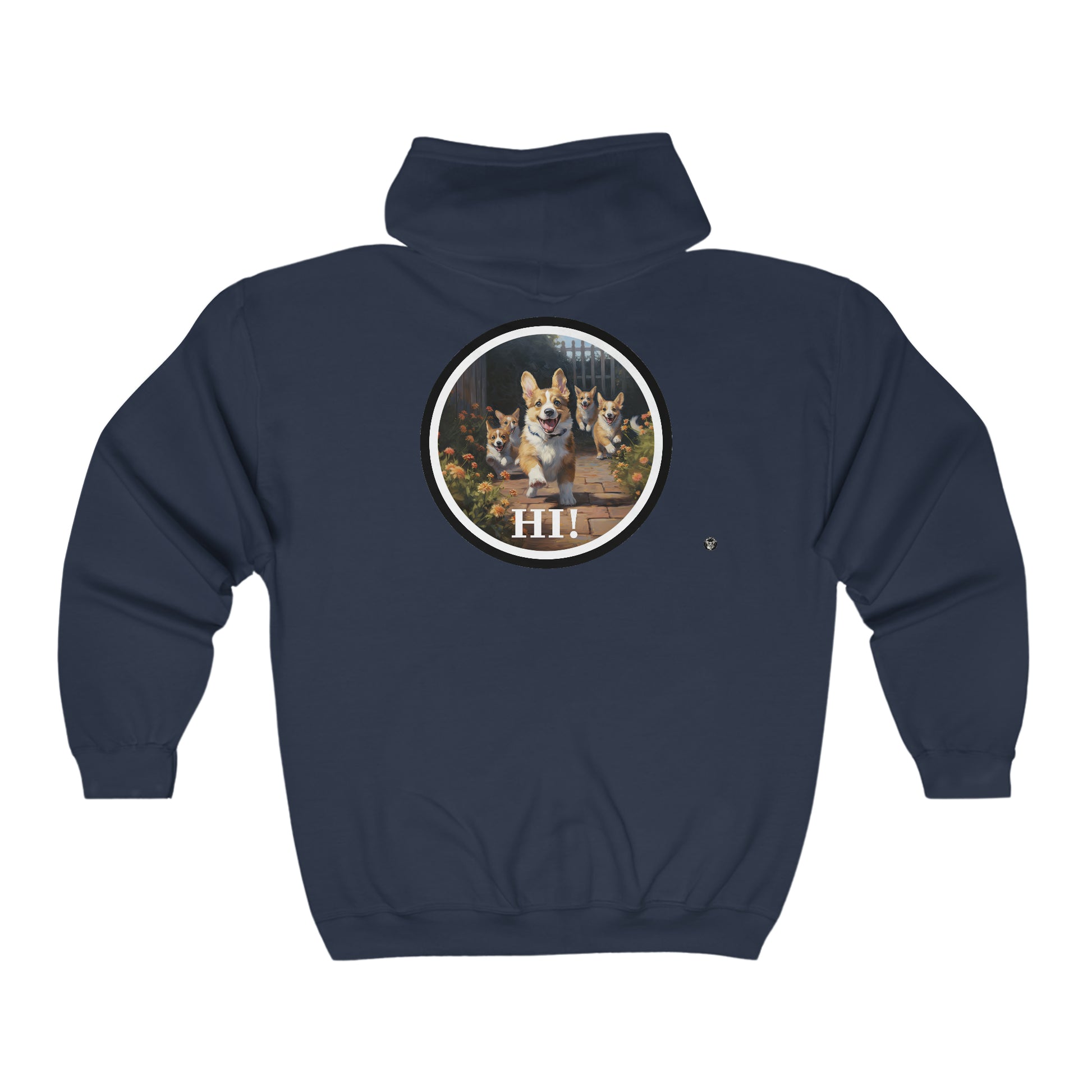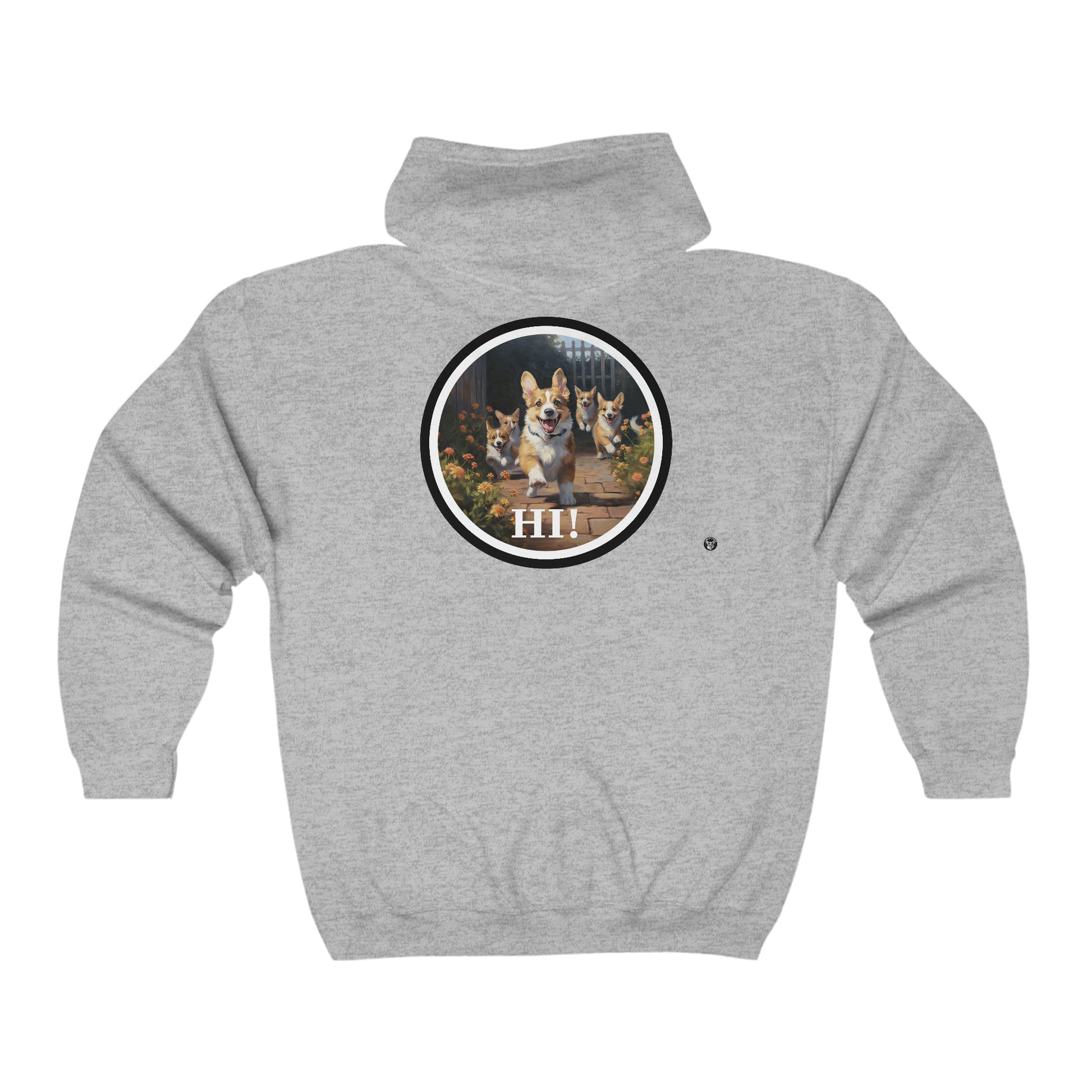 This full zip hoodie provides warmth and comfort. The corgi provides the style and flair.