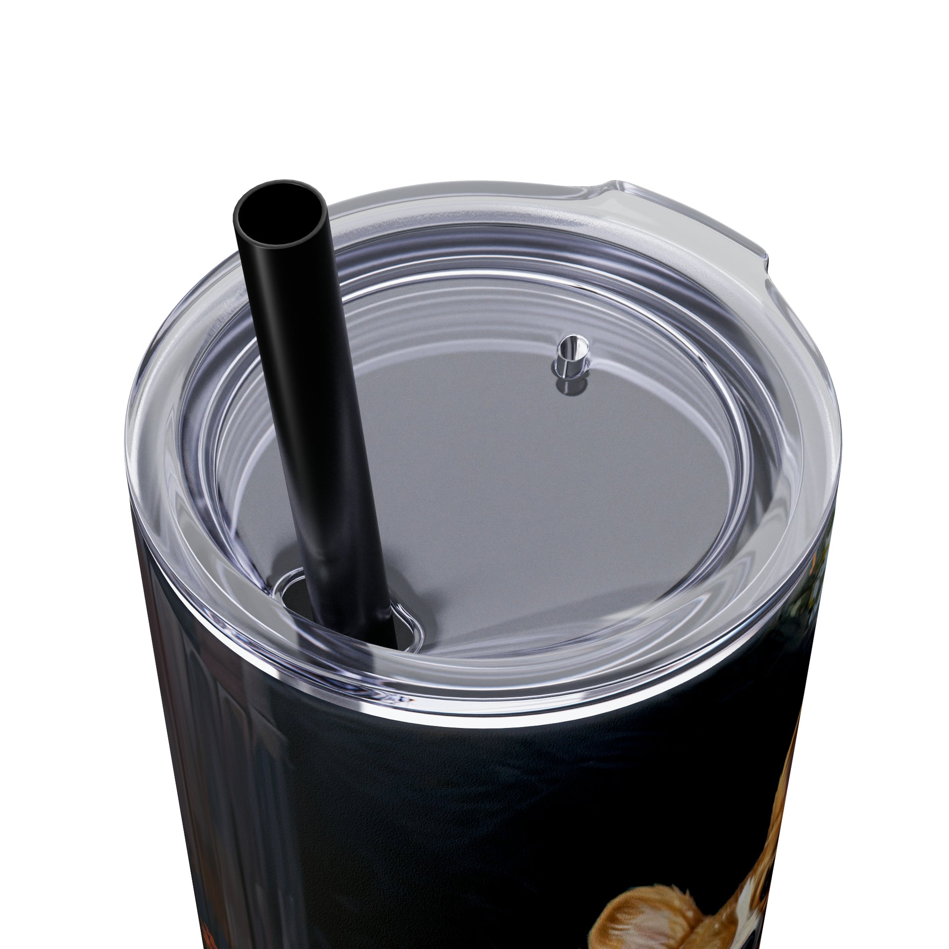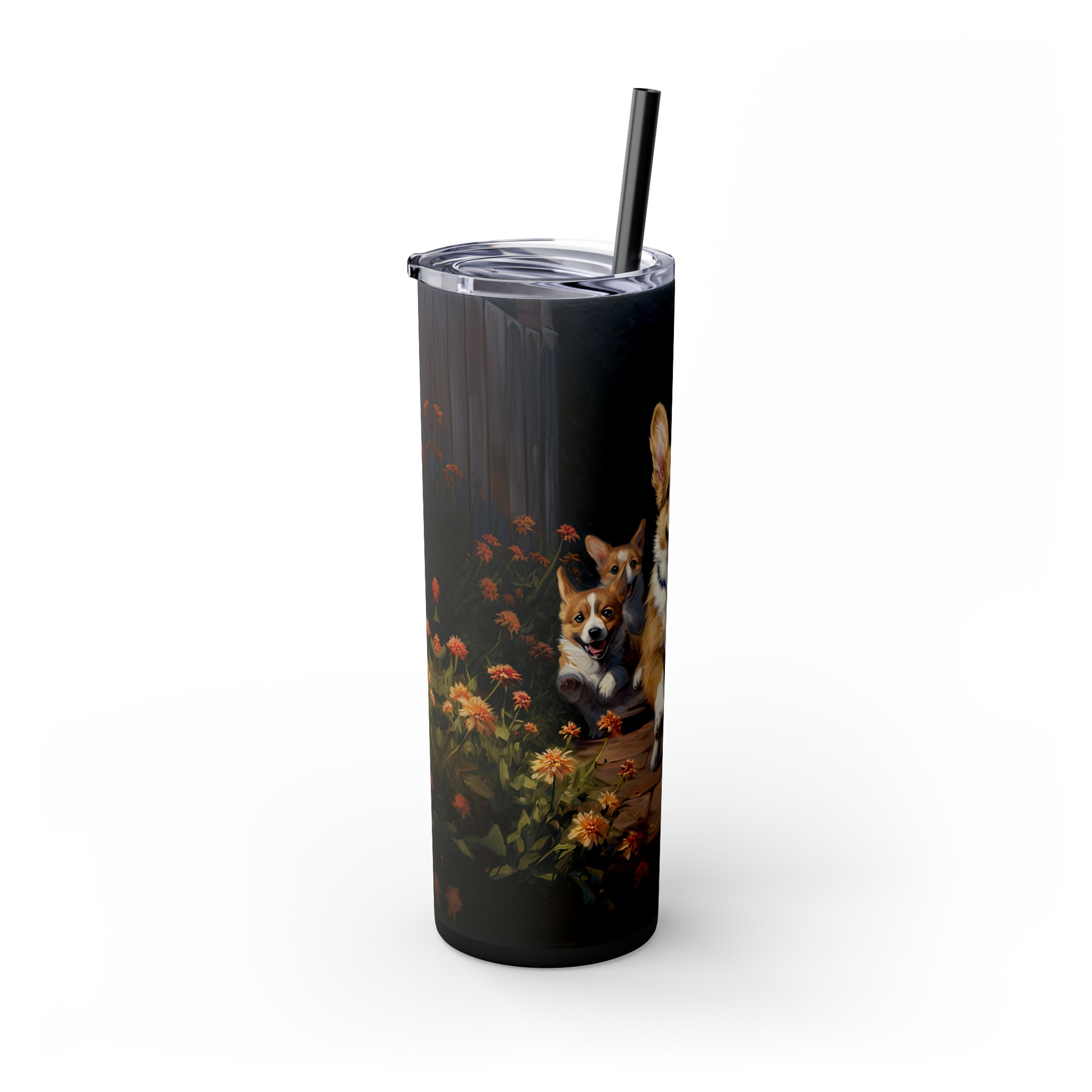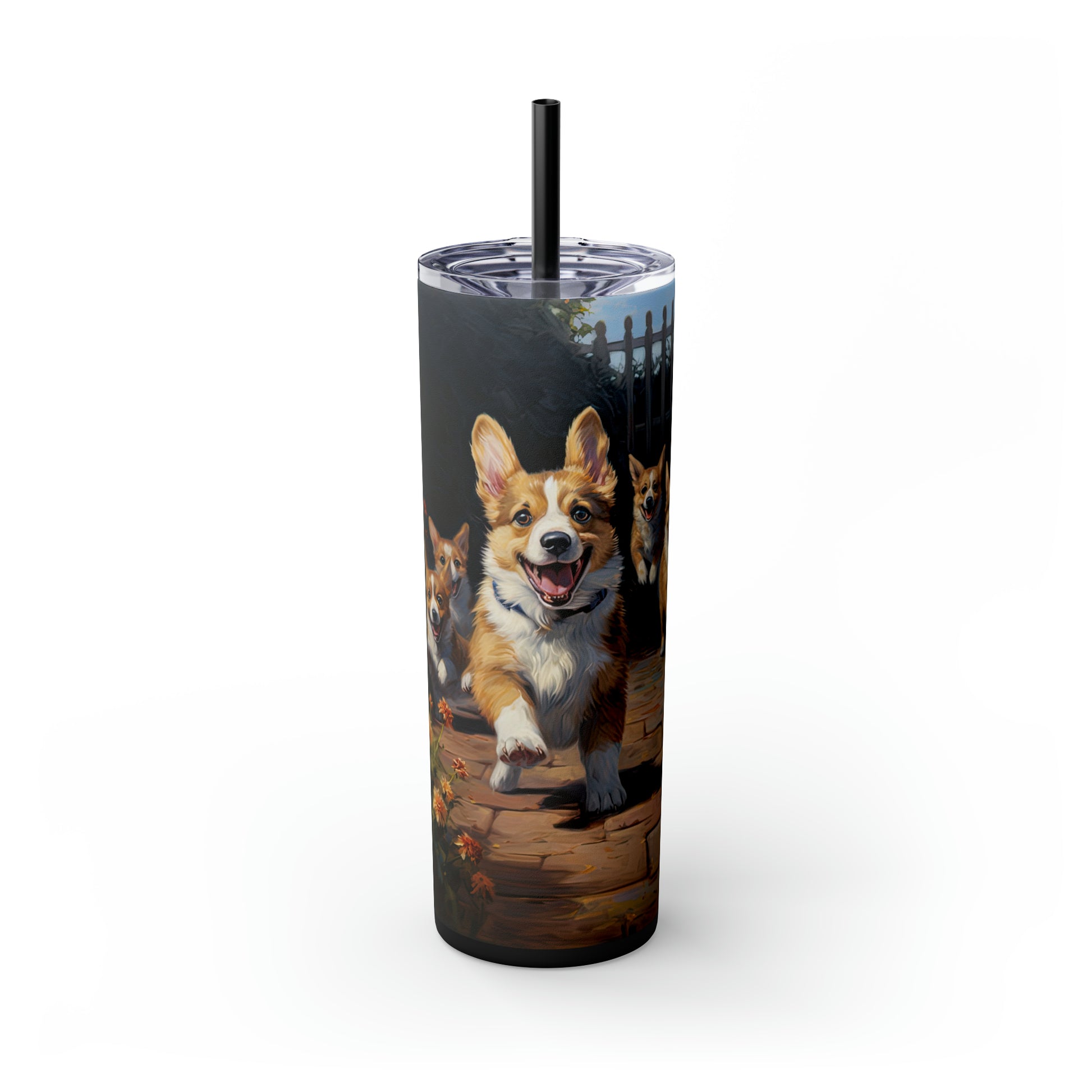 This skinny tumbler has a lid & a straw. But most importantly...it's got corgi!